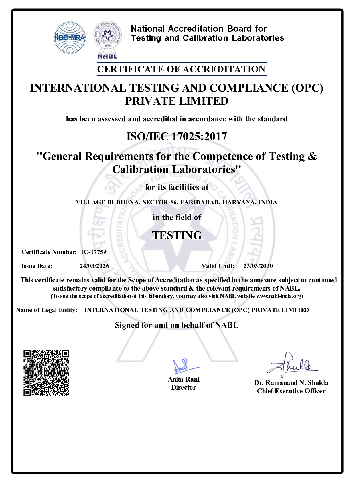 Accreditations that validate our commitment to quality and excellence in the field of testing and compliance.